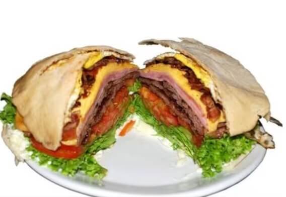 BEIRUTE AMERICANOPão sírio, dois ovos fritos, presunto sadia, bacon , queijo prato , alface crespa , tomate , maionese temperada e batatas fritasR$ 34,99